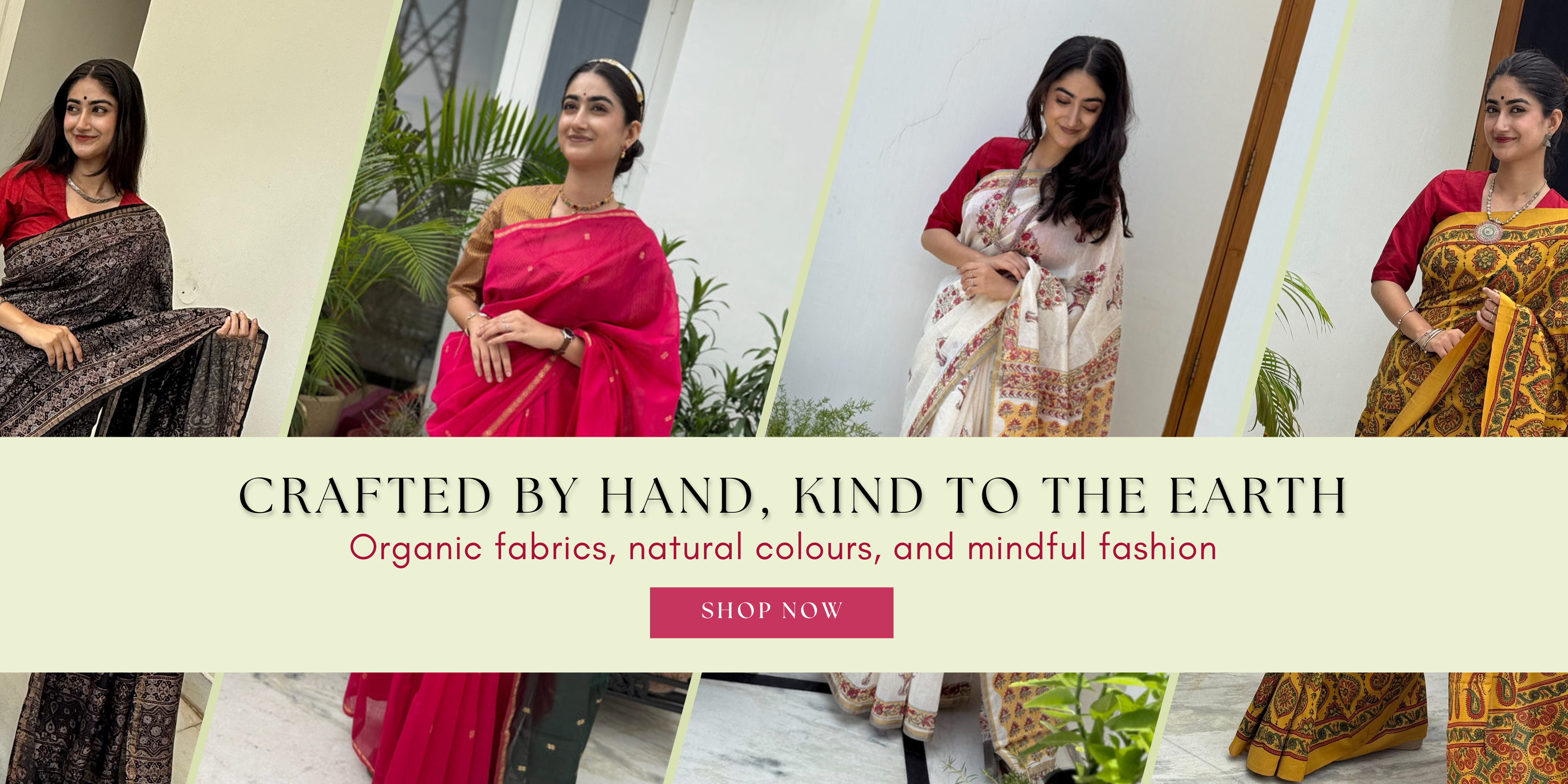 Beige and Black Hand Block Cotton Silk Maheshwari Saree